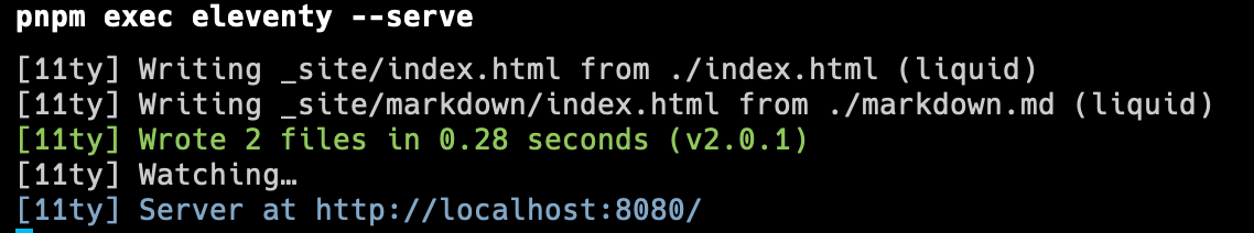 pnpm exec eleventy --serve或使用簡寫 -s: