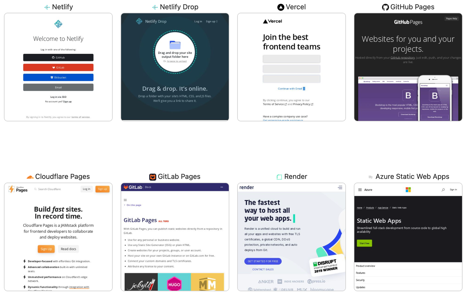 11ty 官方列出了許多支援的靜態網站託管服務: