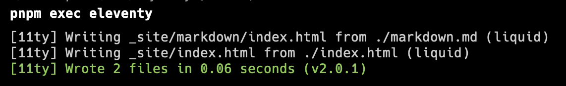 pnpm exec eleventy執行後,你會看到類似以下的輸出: