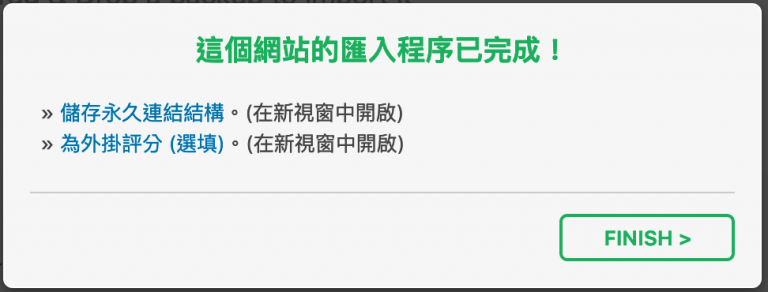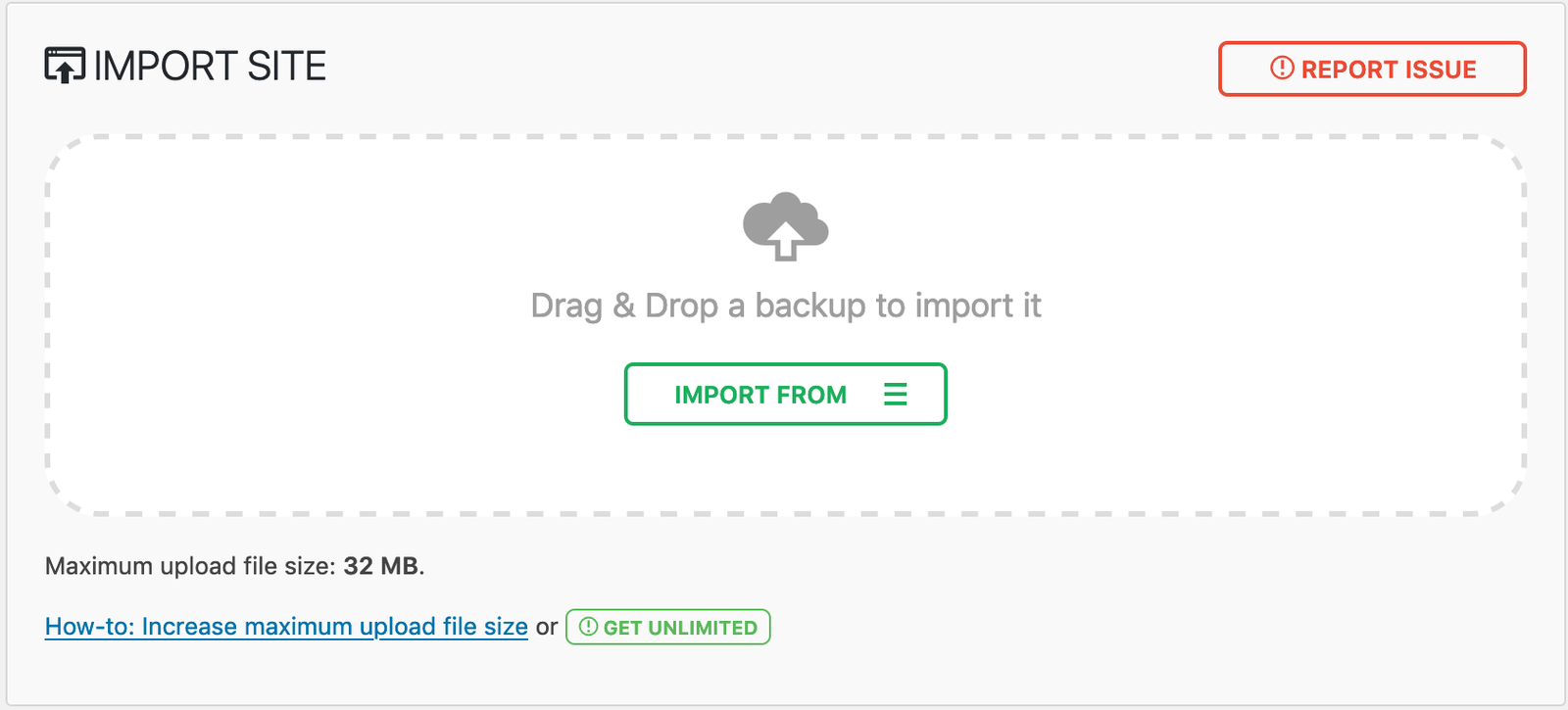 - Import:恢復功能,可匯入之前的備份檔案來恢復網站。