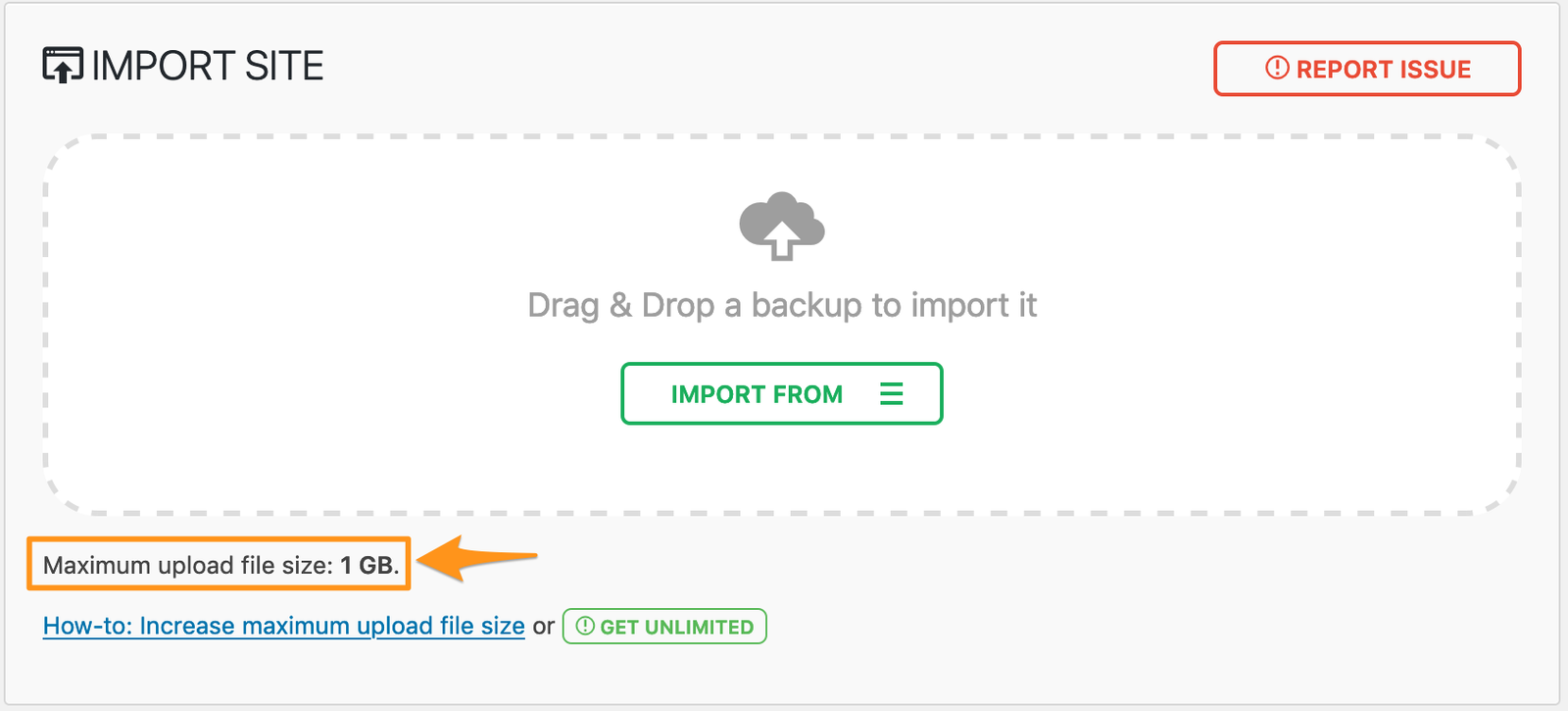 All-in-One WP Migration 在 Import 頁面提供了官方教學連結,說明如何提高上傳容量限制。