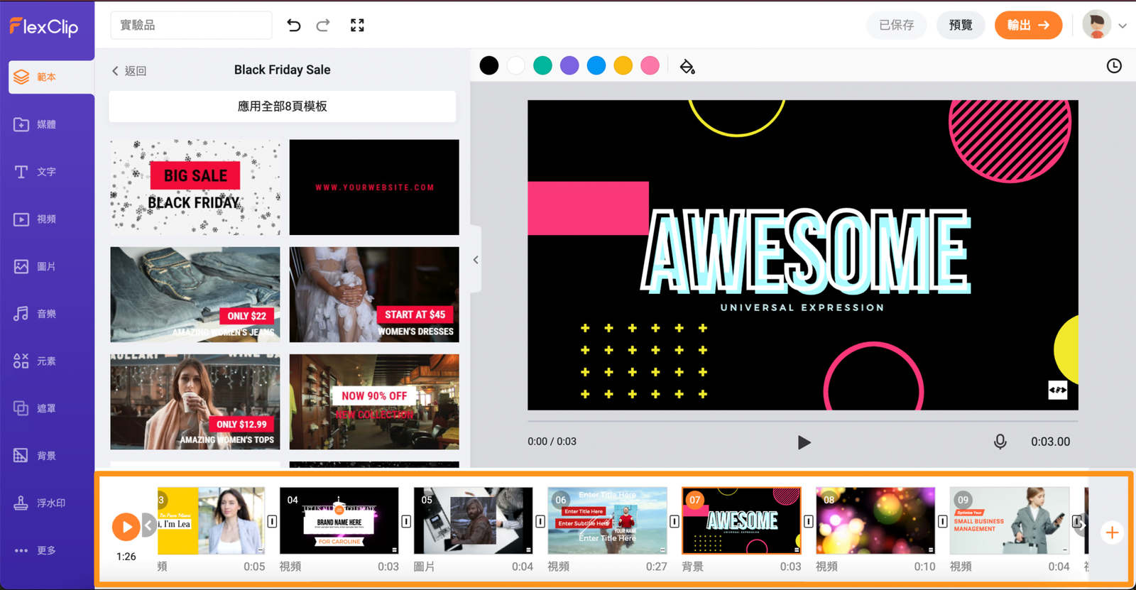 熟悉 FlexClip 基本的三個區塊運作,基本上就可以完全運用這套軟體。
