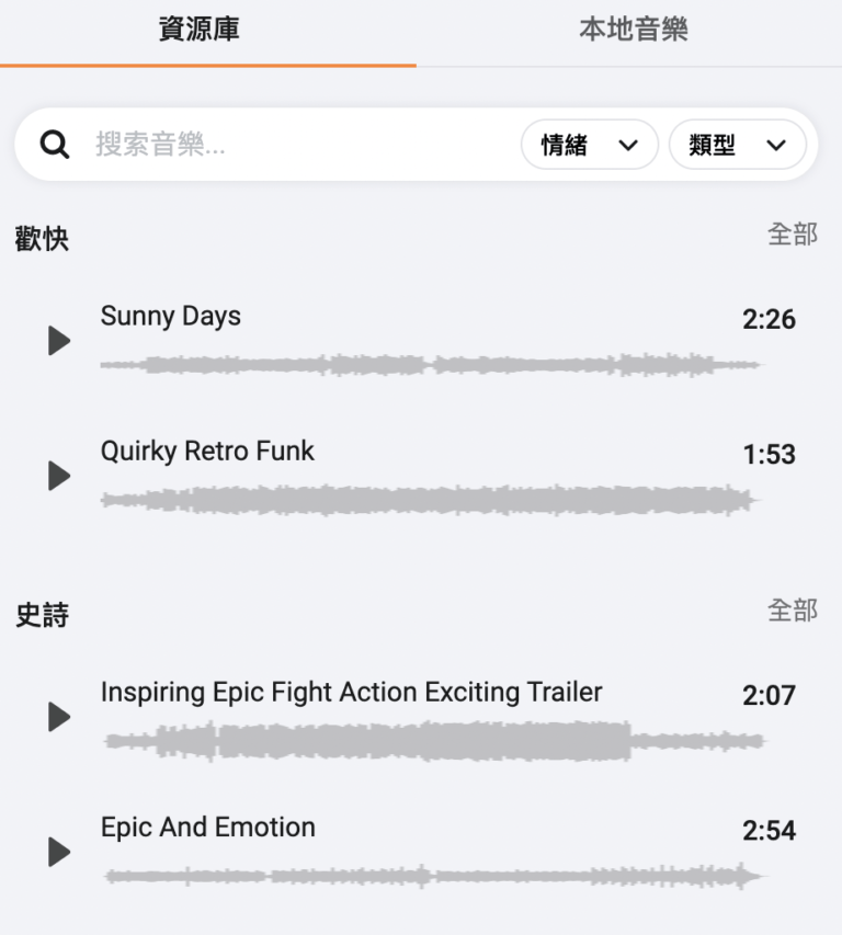 除了 FlexClip 本身提供的超大量素材,我們也可以上傳自己的素材,不管是圖片、影像、音樂等等,商業套餐提供 100G 容量供您使用。