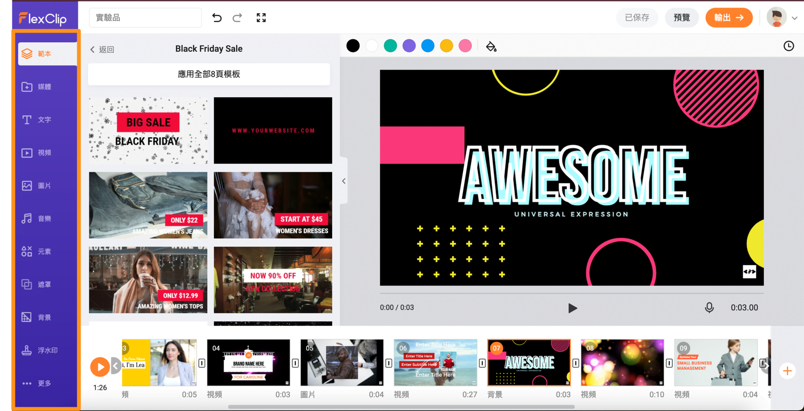 熟悉 FlexClip 基本的三個區塊運作,基本上就可以完全運用這套軟體。