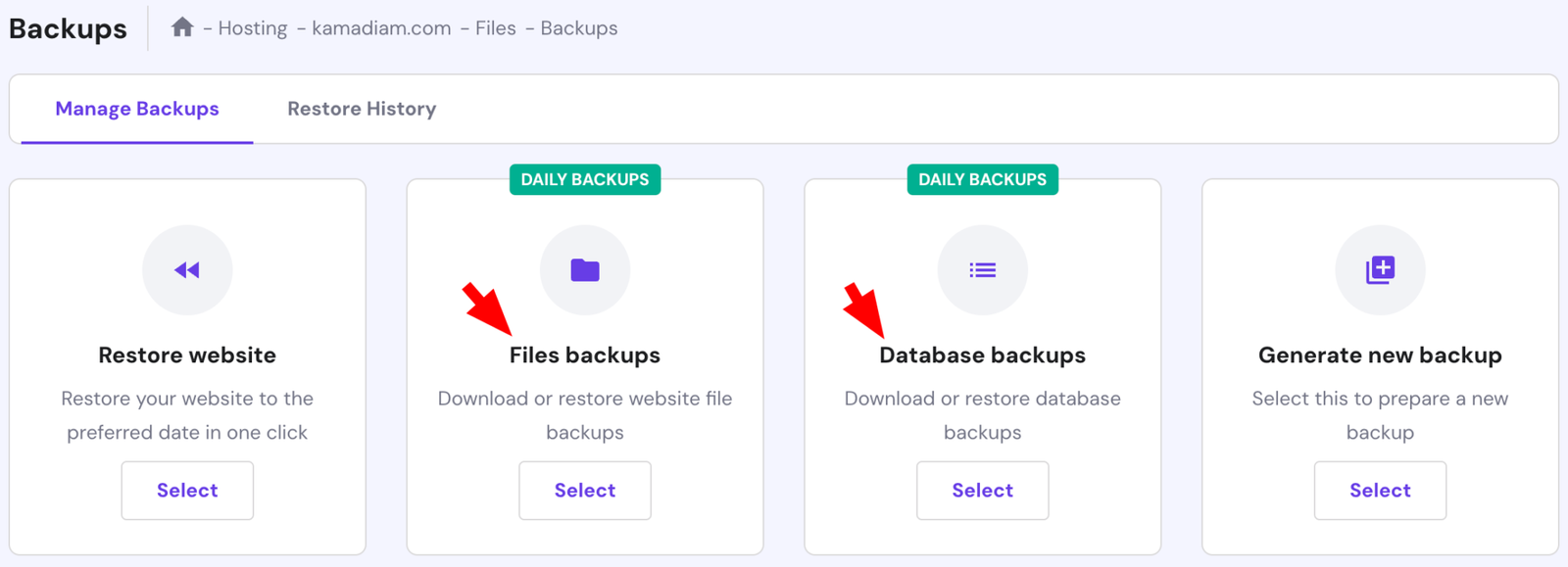 Hostinger 會每日備份整個站台,包含檔案和資料庫,這讓我們可以輕鬆地將網站還原到本機環境。