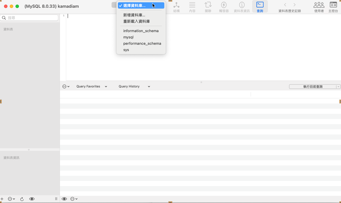 brew install --cask sequel-ace安裝後,請開啟 Sequel Ace 程式,輸入如下圖所示的連線資訊: