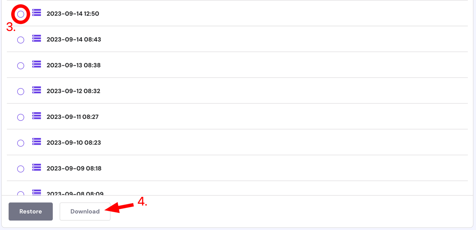 - 選擇資料庫日期(選擇與檔案備份相同的日期,確保資料一致性)