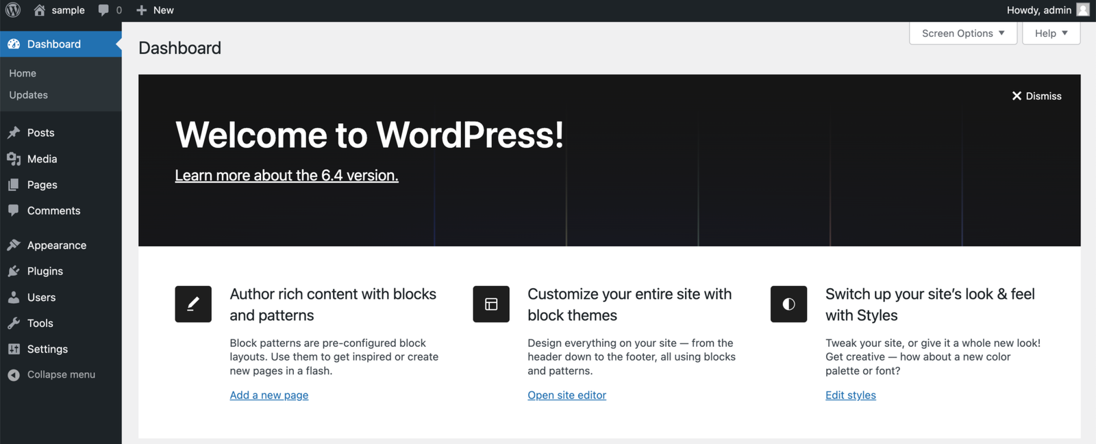 儲存檔案後,重新整理 http://sample.test,即可開始全新安裝 WordPress。你會看到 WordPress 的安裝畫面,按照指示填寫網站標題、管理員帳號和密碼等資訊即可。