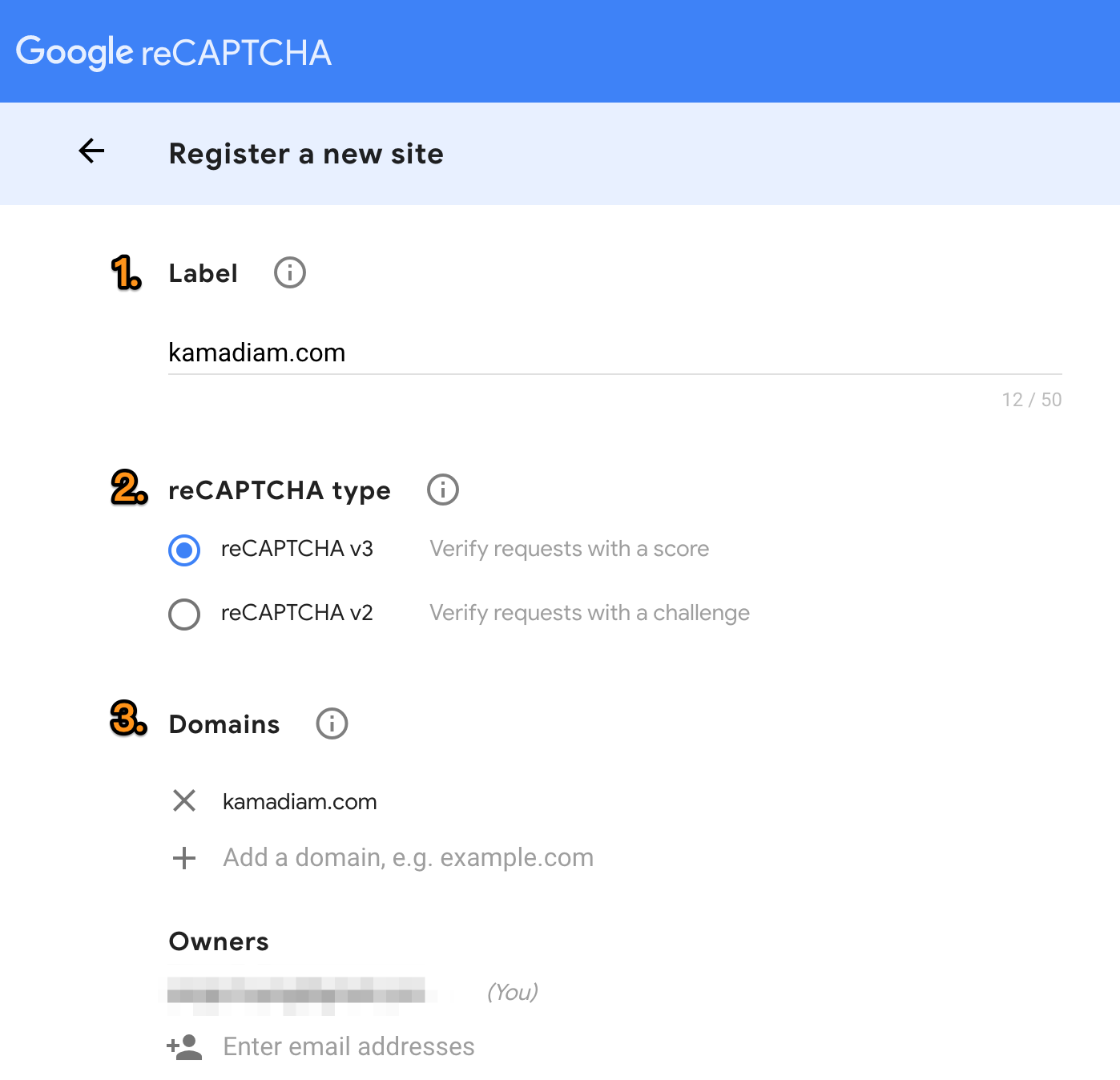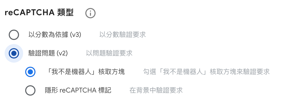 2. 選擇 reCAPTCHA 版本,先使用 v3 試試看。