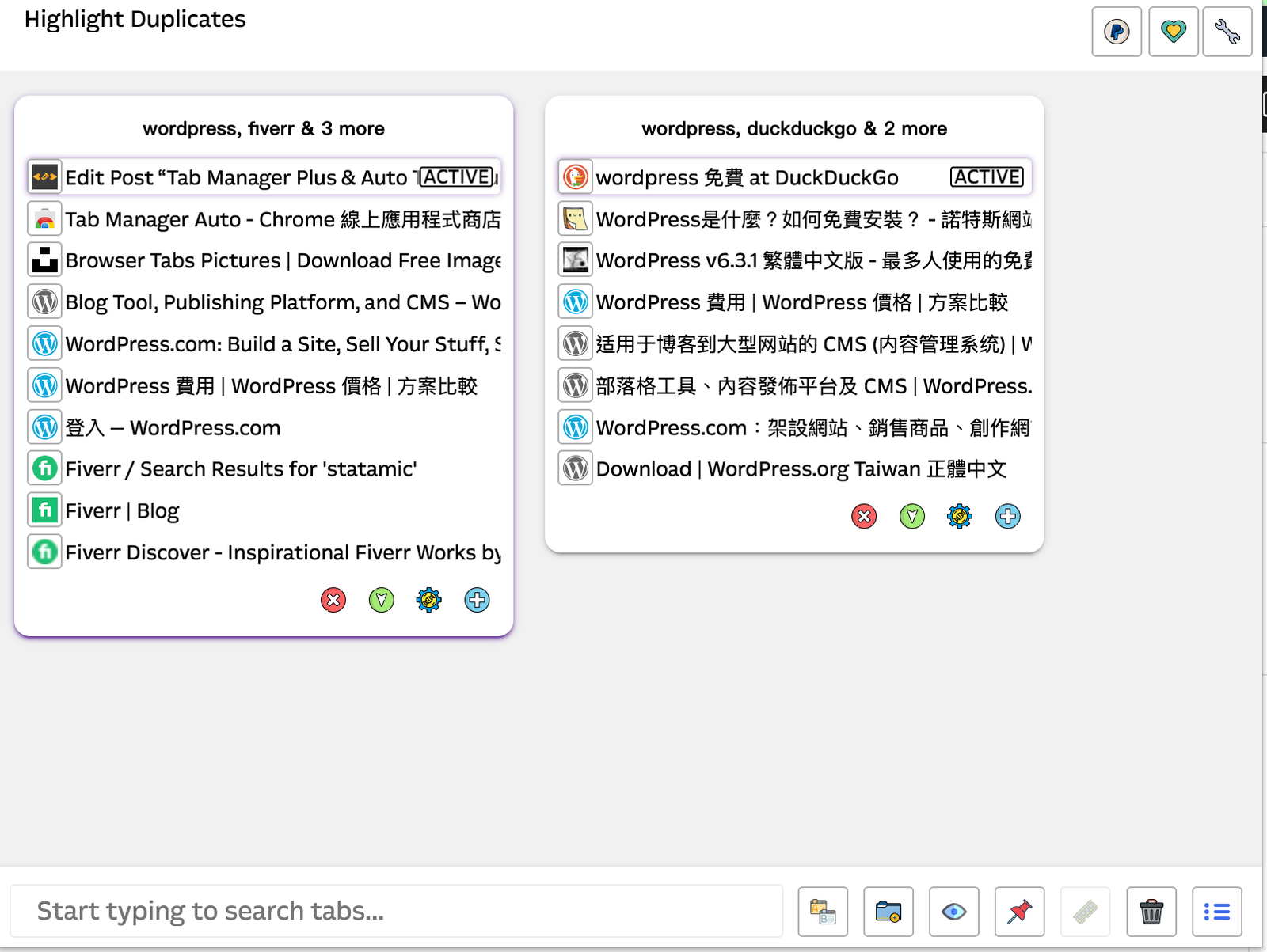 - 重複分頁提示:系統會自動標記出重複的分頁,不再擔心不小心開啟太多相同的網頁。