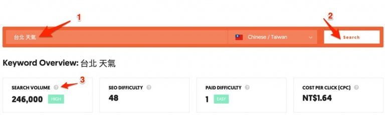 Ubersuggest 是一種搜尋關鍵字的規劃工具,可以查詢關鍵字的優化難易程度,廣告競爭難度和成本。