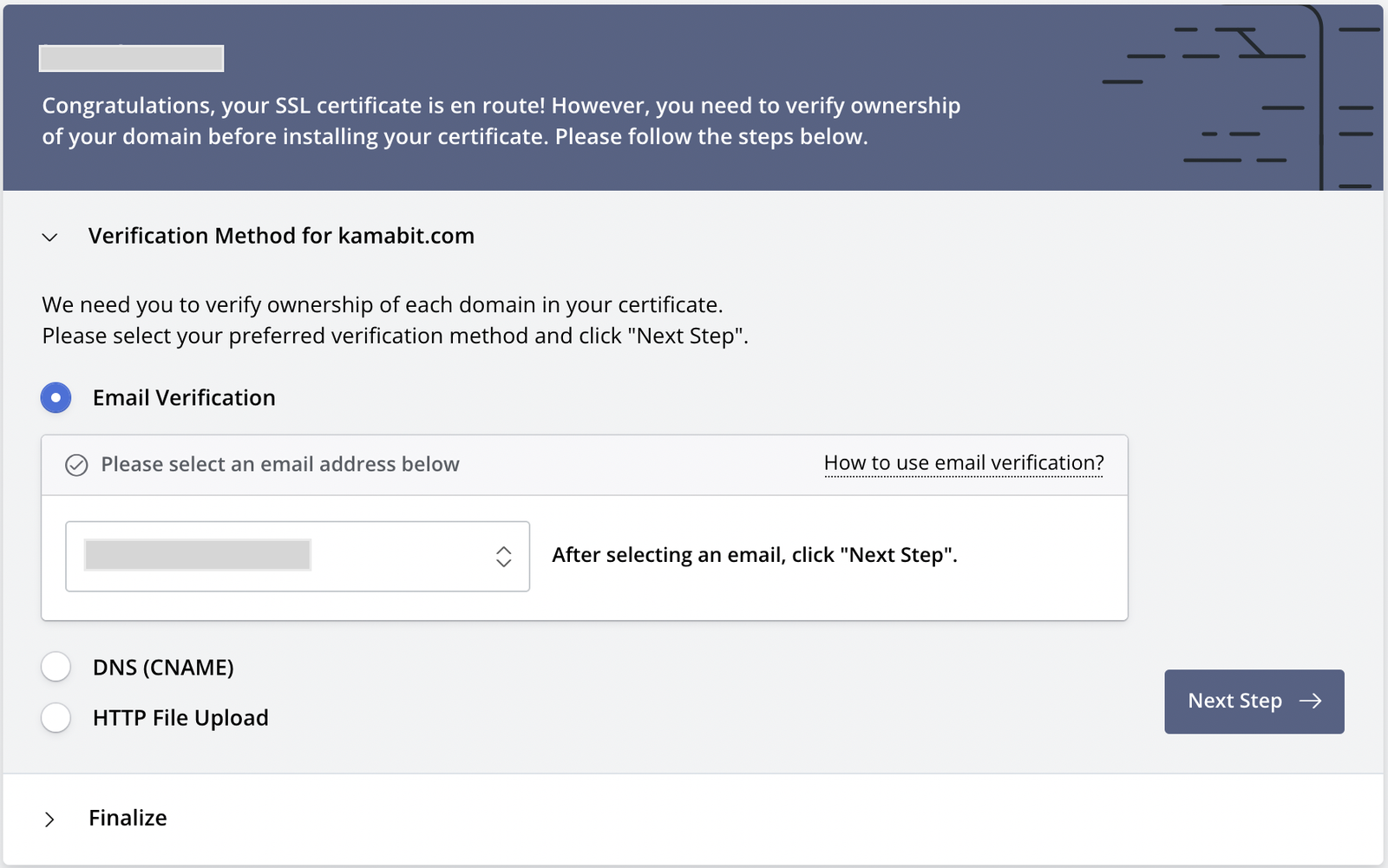 點擊 [Next Step ->],過一會就會收到驗證信。