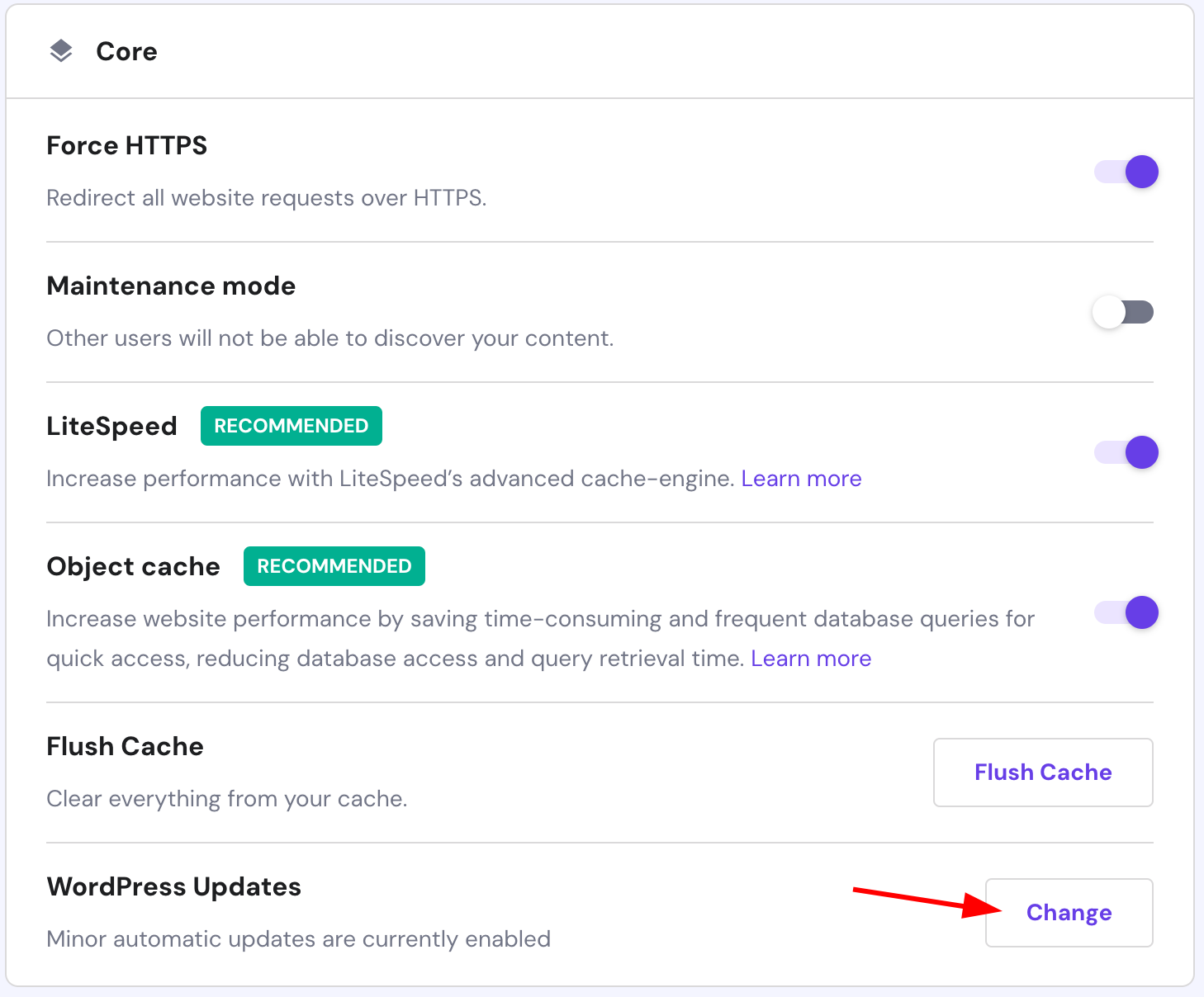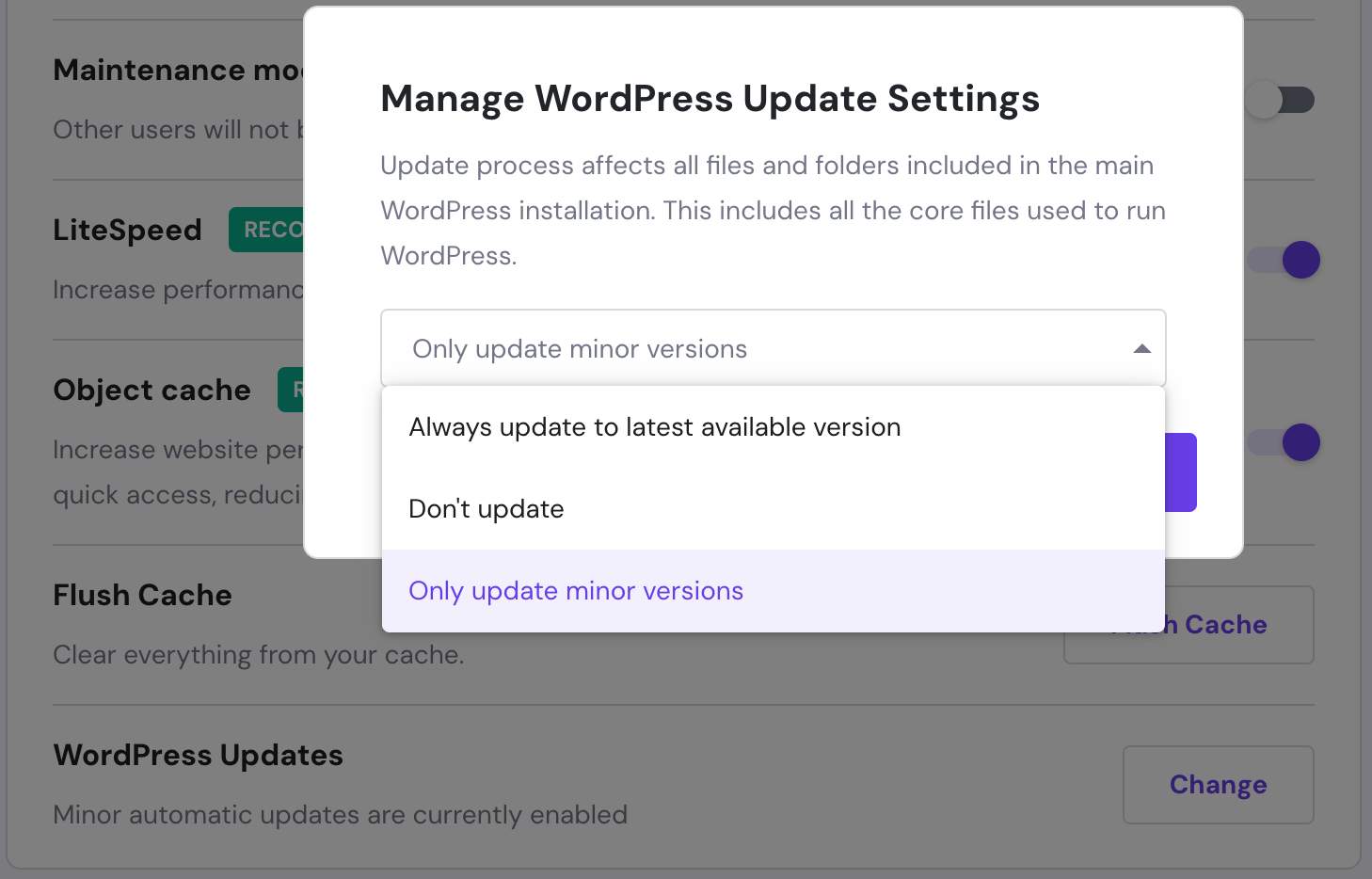 虛擬主機通常會提供自動更新機制,例如 Hostinger 後台管理可以設定 WordPress Updates