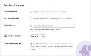 - Core notifications: WordPress 預設會在核心更新時發送 email 通知,不想收到 email 可取消勾選