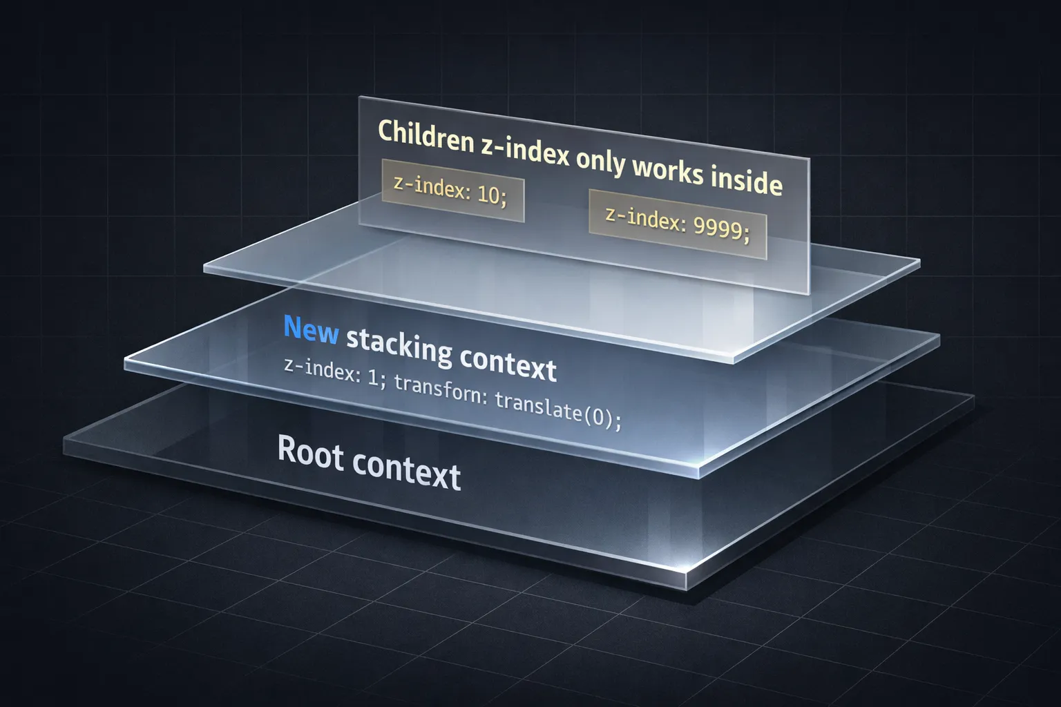 用最直覺的方式搞懂 stacking context:常見踩坑、排查流程、可直接用的範例與註解。