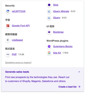這個工具對於學習和參考其他網站的技術選型非常有用,也可以幫助你了解競爭對手的技術架構。