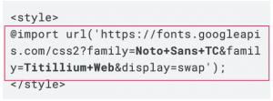 將之前在 Google Fonts 複製的 @import 語法貼上(就是有紅框標示的部分)。這個語法會載入您選擇的 Google Fonts 字型。