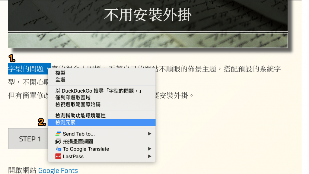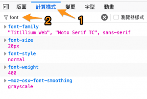 如果您看到其他網站使用了喜歡的字型,想要知道是什麼字型,可以使用瀏覽器的開發者工具來查看。
