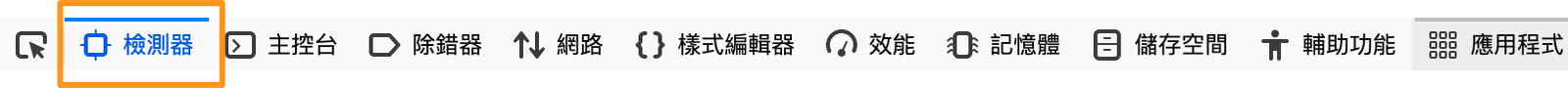 下方會出現網頁開發工具箱,選擇【檢測器】標籤。
