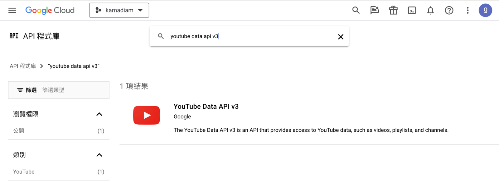 要使用 Google API,首先需要在 Google Cloud Platform 上建立一個新的專案,然後在該專案中啟用 YouTube Data API v3。