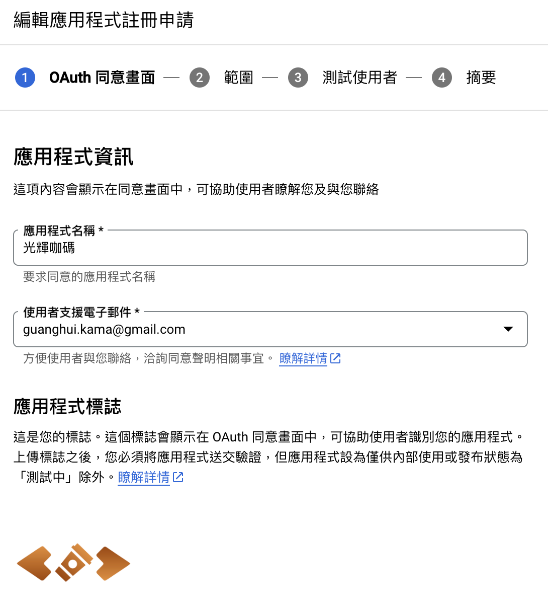 設置 OAuth 同意畫面,提供必要的應用資訊。
