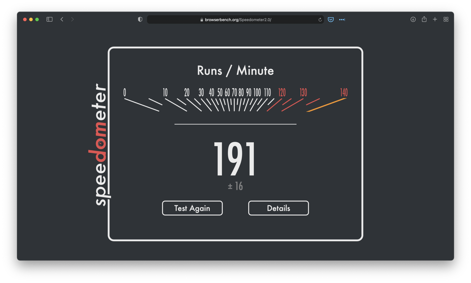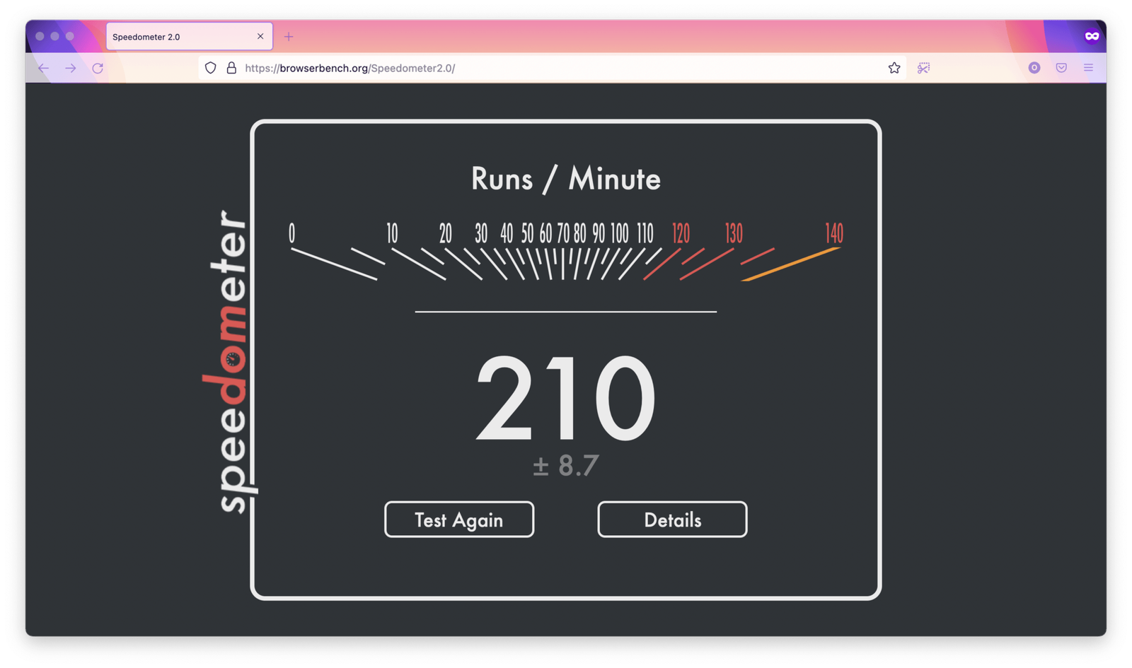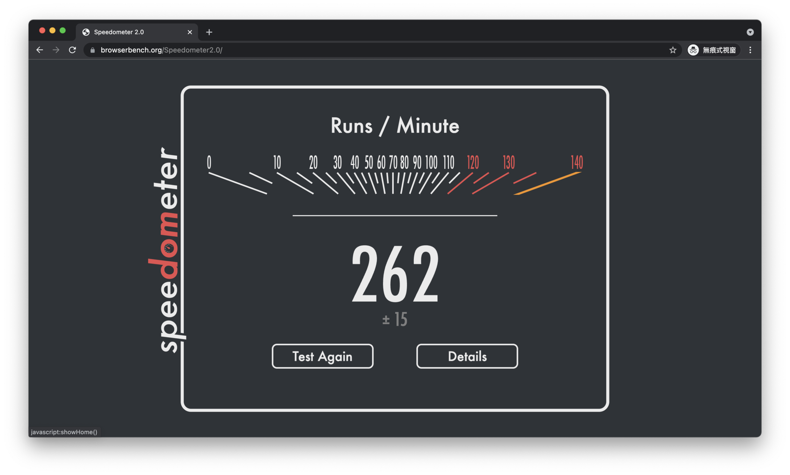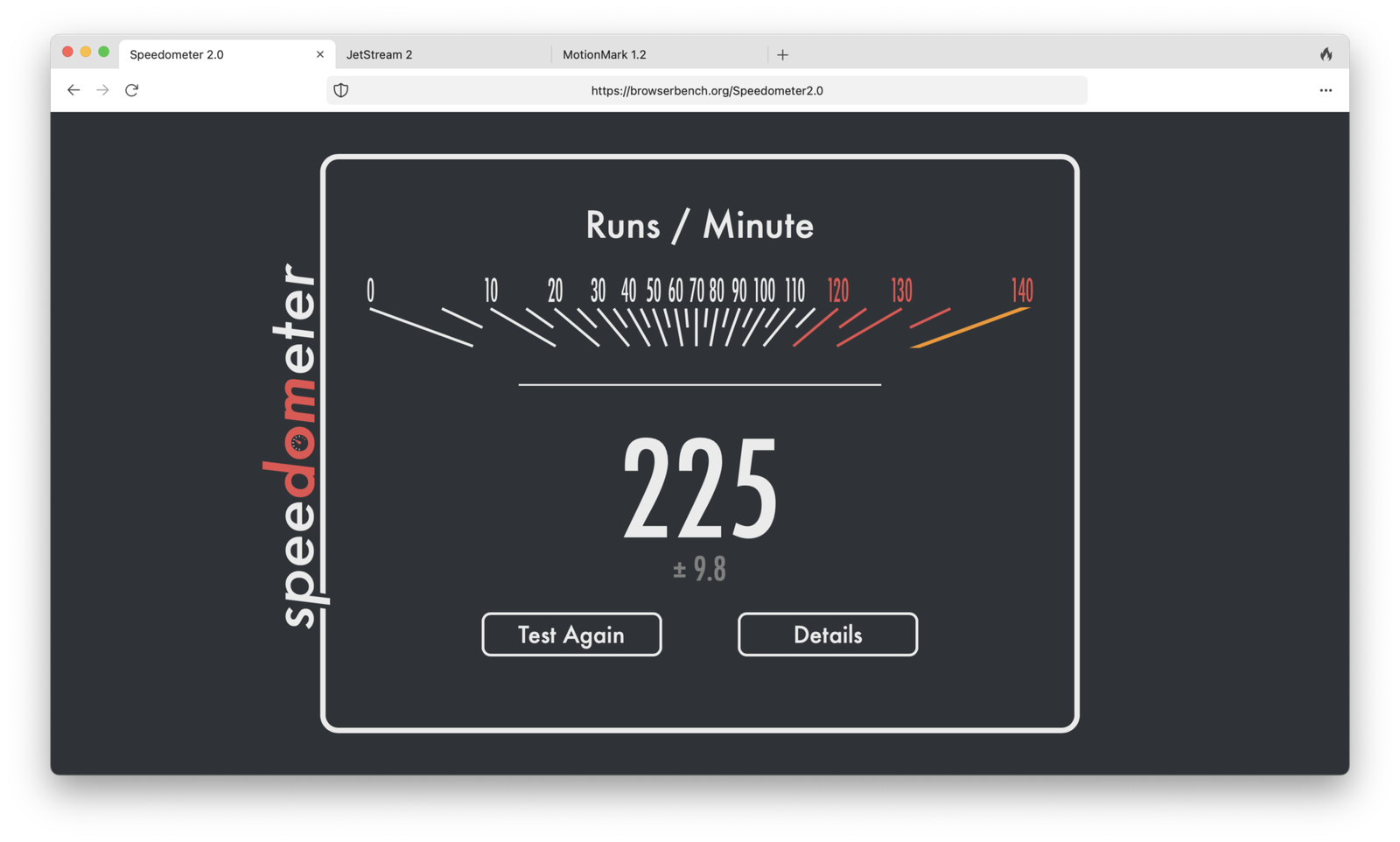 DuckDuckGo 瀏覽器的速度還蠻快的,motion mark 竟然有兩倍的超前,目前還在 Beta 中,想要在 Mac 中試用,必須先下載手機版,開啟設定 -> DuckDuckGo Desktop App -> Join the Private Waitlist。