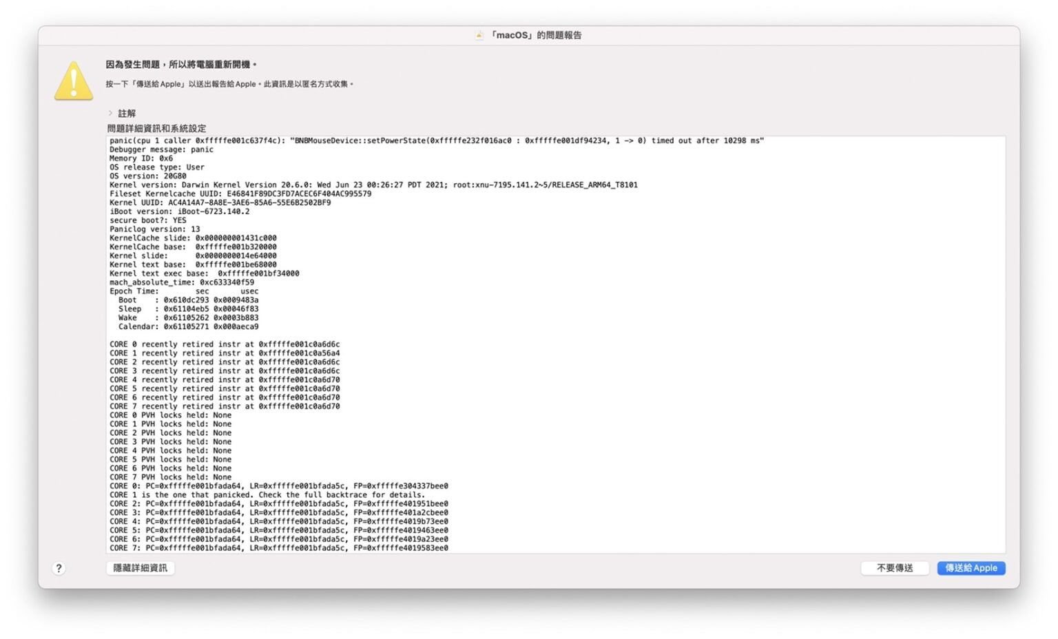 M1 架構最讓人擔心的就是穩定度問題,也的確有很多災情在世界各地分享,但 M1 已上市一年以上了,需要處理的 Bug 和硬體問題應該差不多都處理好才對,沒想到也遇到不穩定的狀況。