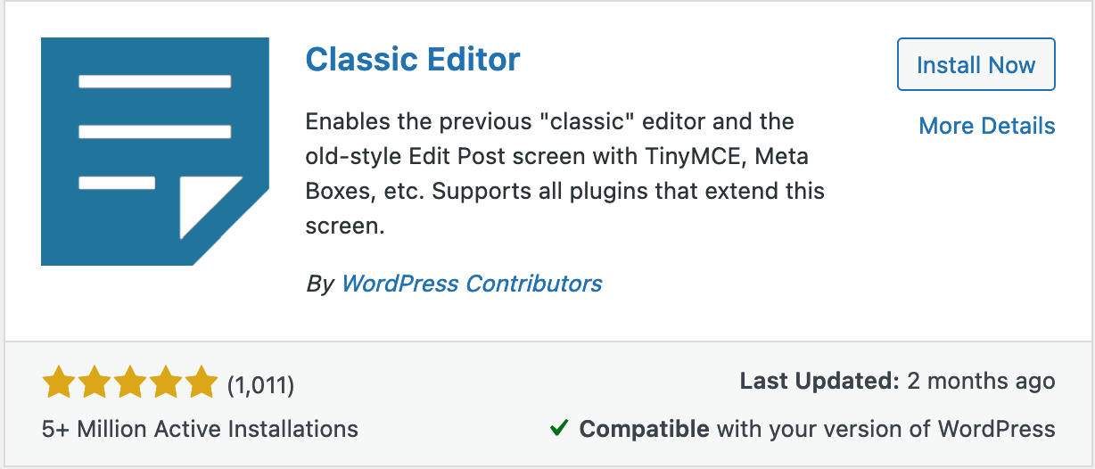 觀察這個外掛的安裝數量,看來有非常多的使用者,還是喜歡傳統編輯器。