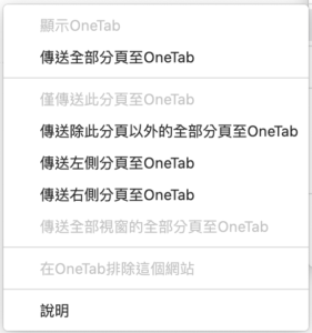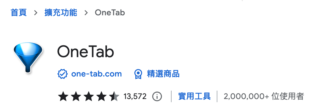 OneTab 是一個專為 Google Chrome(也支援 Firefox、Edge 和 Safari)設計的擴充功能,主要用途是為了節省記憶體和減少分頁的混亂。