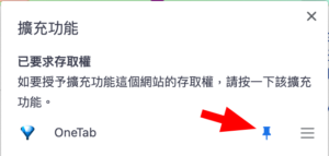 為了支援新的「分頁群組」功能,OneTab 會請求新的權限。但不用擔心,這些權限僅用於確定需要儲存的分頁群組的顏色和標籤。