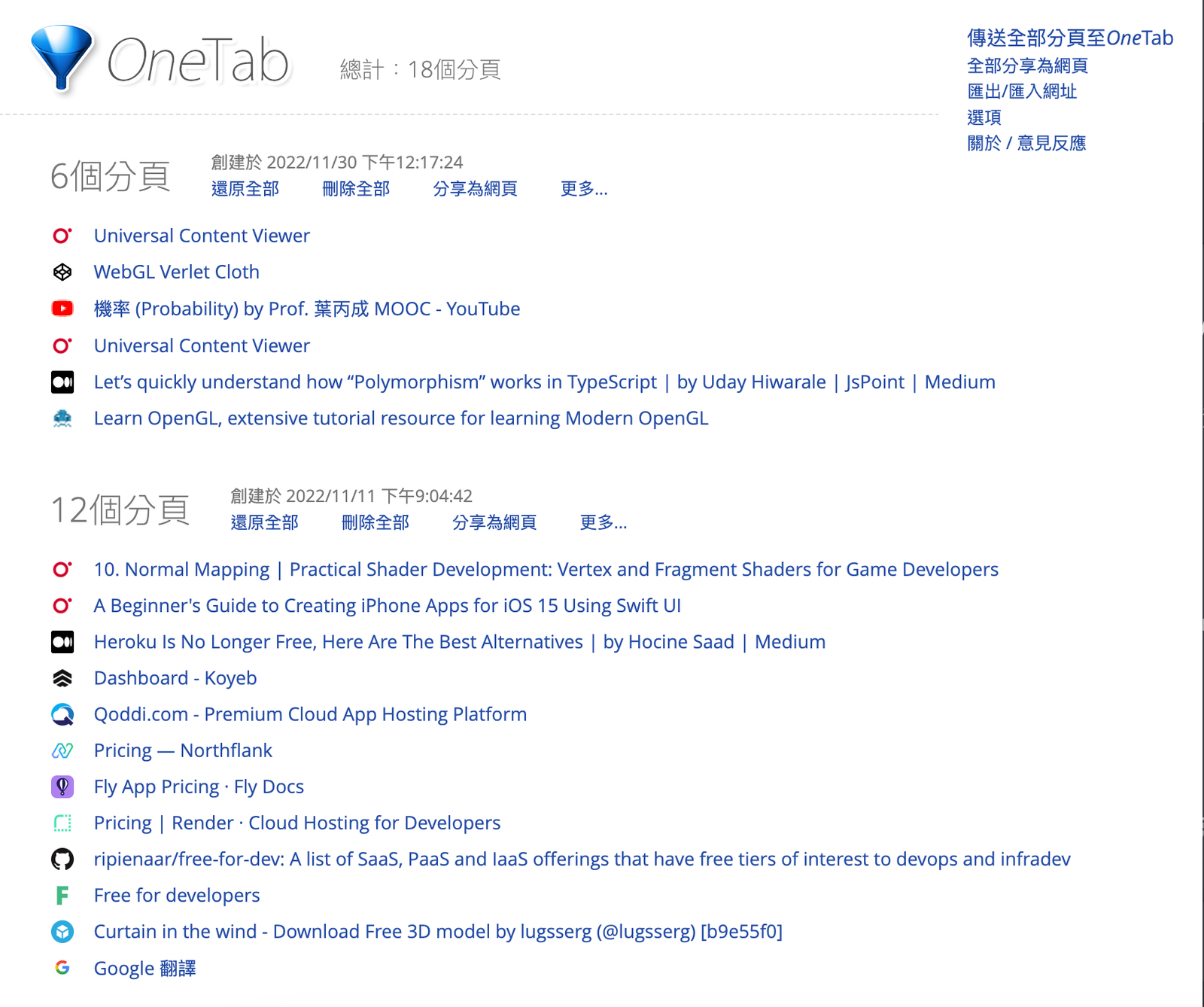 總之,無論你是分頁的業餘愛好者還是職業玩家,OneTab 都能讓你的分頁生活變得更美好。
