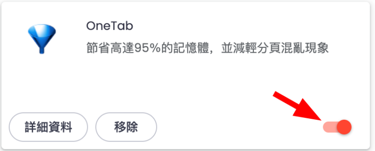 請注意解除安裝會將之前儲存的分頁一併刪除,如果想要留存分頁資料,請暫時關閉這個擴充功能就好。