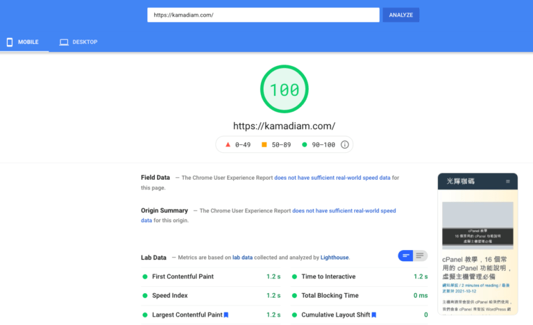 PageSpeed Insights 能提供網站速度報表,包含手機和 PC 上顯示的速度、研究資料、網頁診斷和最佳化建議,及各式各樣的優化方法。