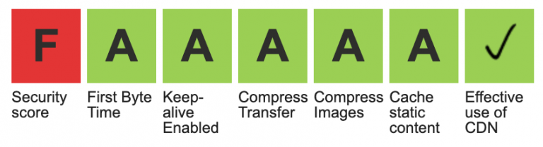 WEBPAGETEST 特別的地方在於多提供一個安全性分數,檢查 HTTP security headers,與檢查網站是否有脆弱易受攻擊的 Javascript Library。
