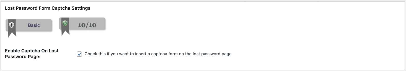 進入後台,點擊選單 WP Security -> Brute Force -> Login Captcha 頁面,可以設定使用 Google reCAPTCHA。先在這輸入上面取得的 Site Key 和 Secret Key,再設定你想要在什麼畫面中插入圖形驗證碼。