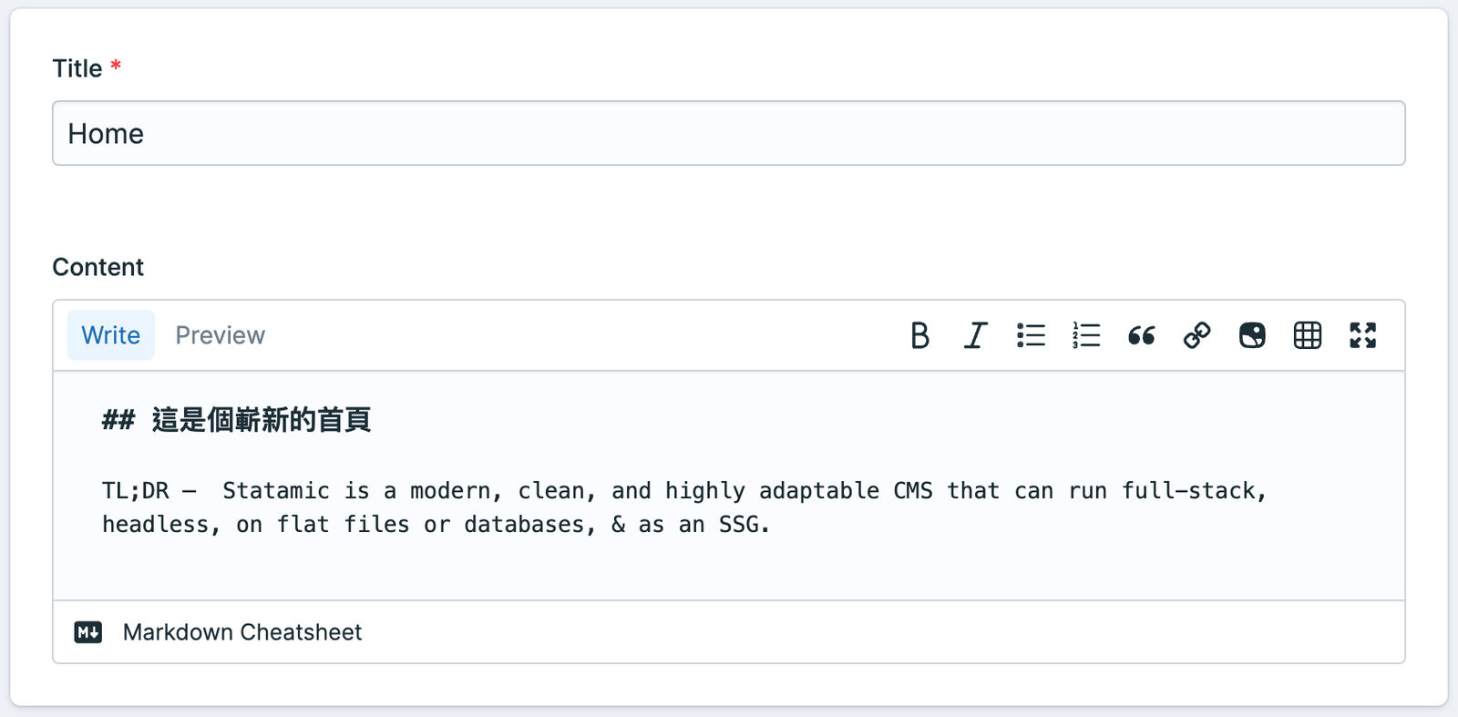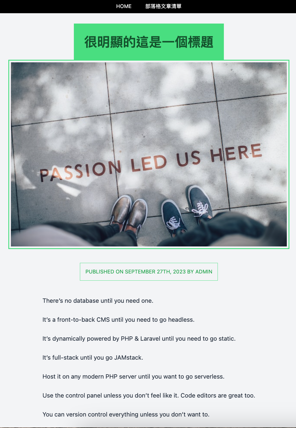 原來 Statamic 是一個完整的 CMS,又不需要資料庫,也可以當作靜態網站產生器,這真是太神奇了。