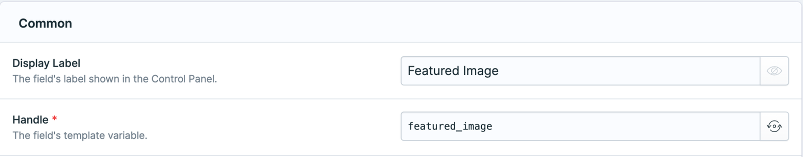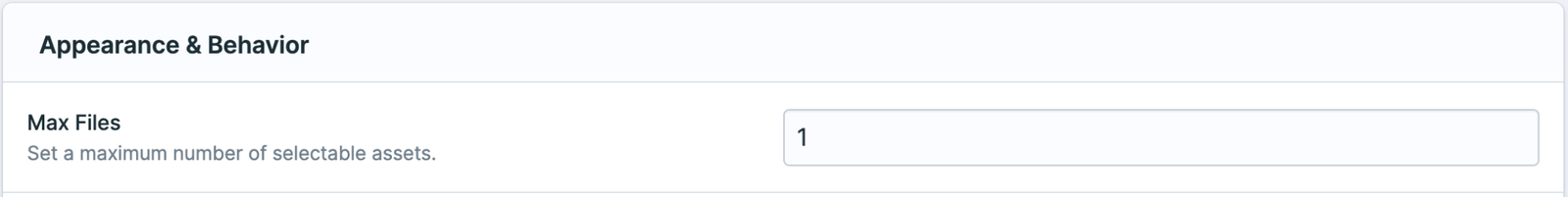接下來,將該欄位的顯示名稱指定為“Featured Image”,Handle 會自動被標記為 featured_image。這將是在範本中用於獲取資產資料的變數名稱。將「最大檔案數」設為 1,按一下「完成」。