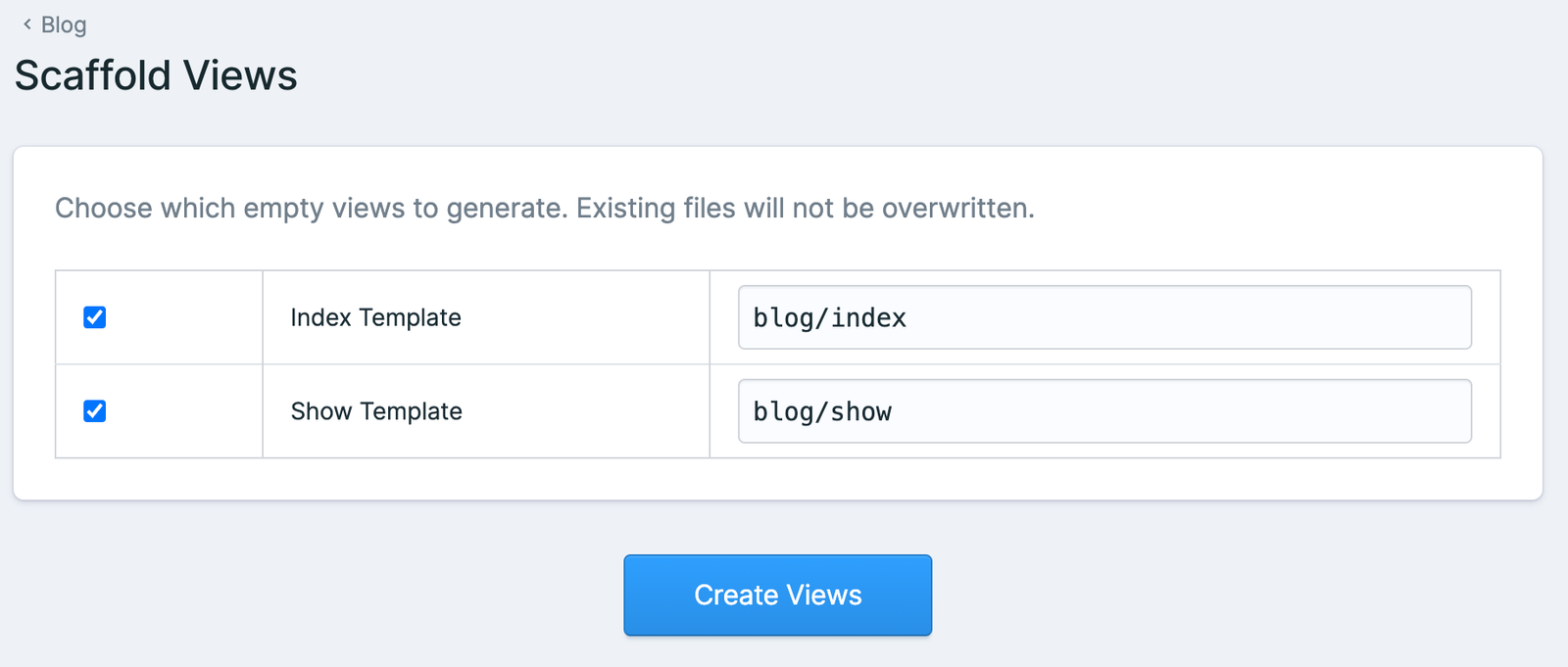 按下 [Create Views],將會產生 2 個範本檔案,等會兒用到。